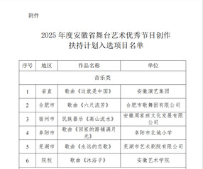 2025年9月25日,安徽省文化和旅游厅正式公布了2025年度安徽省舞台艺术优秀...
