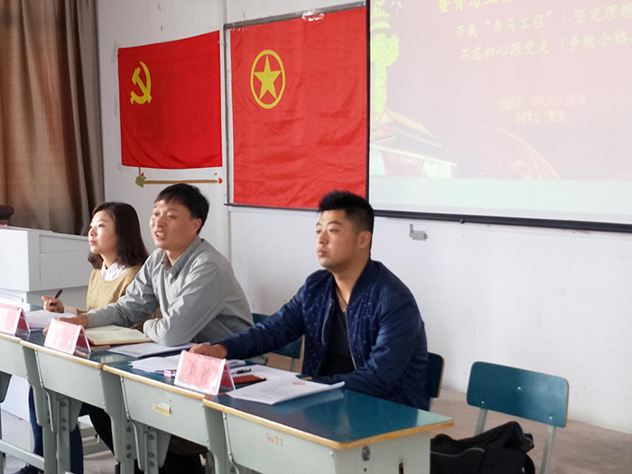 会议伊始,与会老师首先传达了院党委副书记沈端良对我系“青马工程”开班仪式的祝贺和期望。沈端良鼓励同学们要不断提高自身思想政治素质、创新实践和组织协调能力,坚定走中国特色社会主义道路的信念,成长为中国特色社会主义事业的合格建设者和可靠接班人。