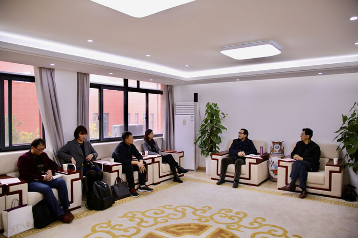 18日上午,在上海戏剧学院华山路校区,电影电视学院院长、研究部主任厉震林,电影电视学院原院长吴洪林、播音主持系主任董健等接待了我院考察团一行。座谈会上,沈端良对电影电视学院的热情接待表示感谢并简要介绍了学院基本情况,希望能在教学理念、学科发展、实训室建设、校园文化建设上得到对方支持。吴洪林指出,播音与主持专业建设要强调“守正创新”,找准定位,创新理念,注重特色发展。厉震林认为,要把专业建设、学科发展放在国家发展的大背景下错位发展。