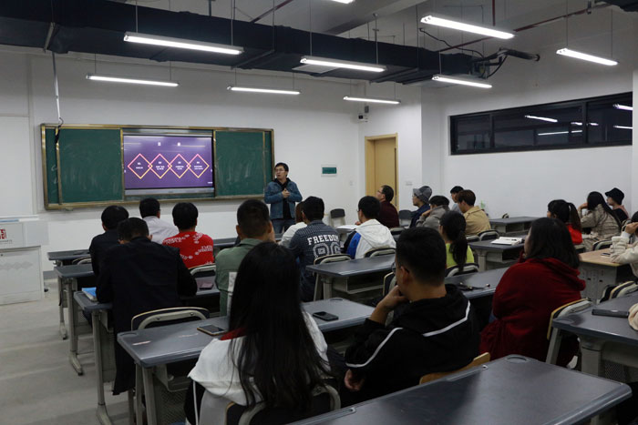 11月14日晚,新闻播音系在美术楼203教室举办“短视频时代机遇与挑战”主题讲座。上海南七文化传媒有限公司创始人兼CEO汪昊担任主讲人。办公室主任刘涛主持讲座,系教科研办公室主任周正及各位同学参加讲座。