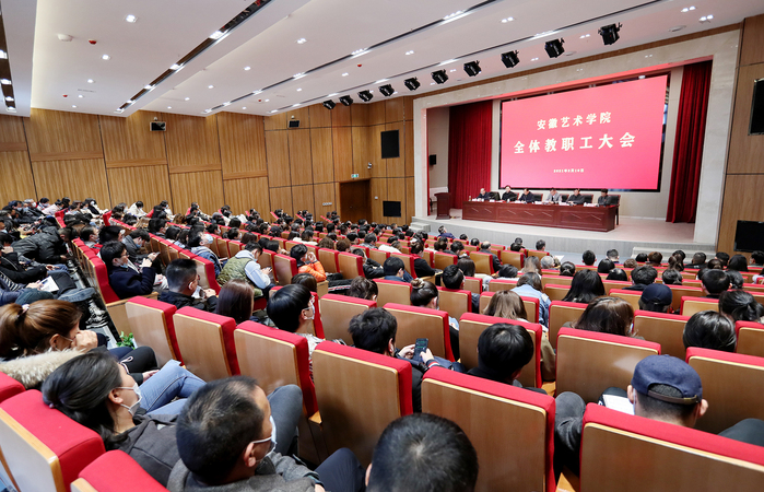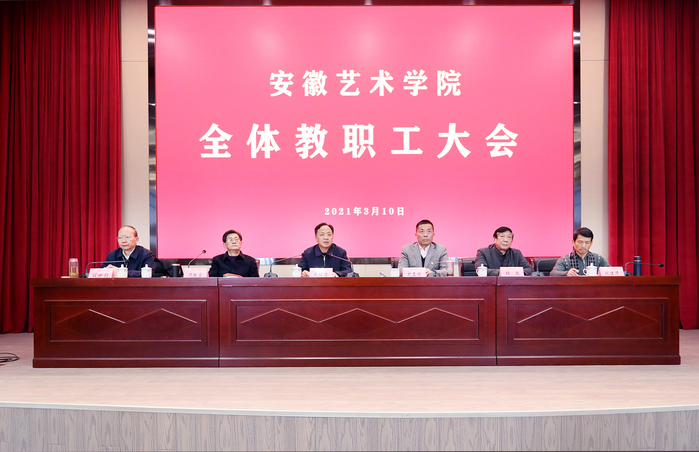3月10日下午,安徽艺术学院全体教职工大会在综合楼报告厅举行。学校全体领导班子成员出席会议。会议由校党务负责人沈端良主持。
