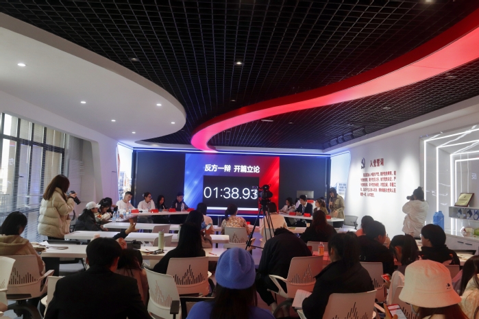 11月24日下午,由校团委、新闻播音系党总支联合主办,新闻播音系团总支学生会承办的第二届校园文化艺术节“校园辩论赛”新闻播音系初赛在播音楼党建VR活动室举行。新闻播音系六十余位辩手参加活动。比赛由姚俊、郑梦琛、王雅卓三位老师担任评委。