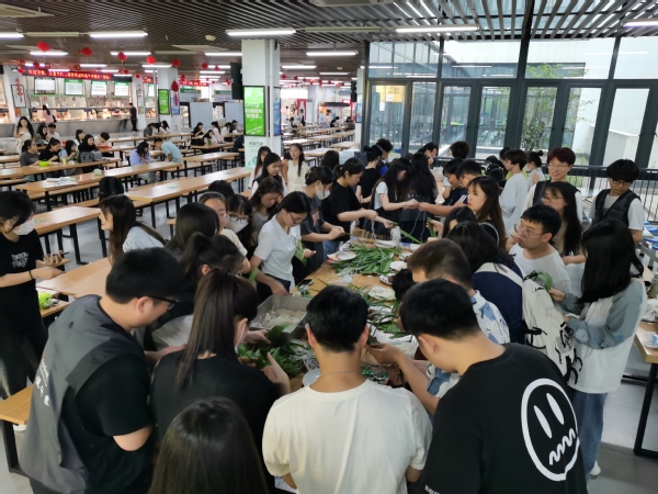 美术设计系在食堂一楼举办“粽叶飘香庆端午”活动,师生们一边包粽子,一边畅叙情谊。卷粽叶、填糯米、放蜜枣、扎线绳……个个忙得不亦乐乎。一张张粽叶在师生的手中变成有棱有角的爱心粽子。现场还有绘制彩蛋、编制手绳等创意手工活动。(撰稿:王晓茹 王雨晴 摄影:吴佳浩 梅星宇 王一凡 初核:蔡正兰 罗耀东 编辑:朱新水 审定:束舒娅)