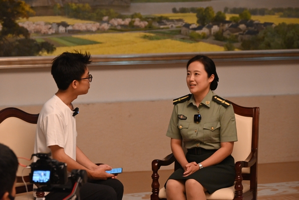 参观完渡江战役纪念馆后,同学们对当时为习近平总书记讲解的渡江战役纪念馆特级讲解员石慧进行采访。采访还对话了渡江战役纪念馆高级讲解员、我校播音与主持艺术专业2015级优秀毕业生黎丹妮。