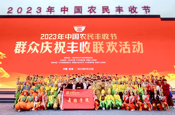 9月23日,由农业农村部、中共安徽省委、安徽省人民政府主办,中共安徽省委农办、安徽省农业农村厅、中共芜湖市委、芜湖市人民政府承办的2023年中国农民丰收节全国主场活动在芜湖市湾沚区举办,安徽艺术学院青年舞团受邀参演全部歌舞类节目。