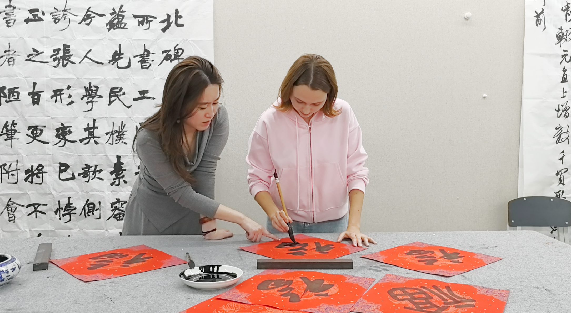 在安徽艺术学院,每一个专业我都很喜欢,这是我正在向美术学院书法学专业老师学习书法。在与老师和同学们的交流中,让我对中国的传统文化更加感兴趣。