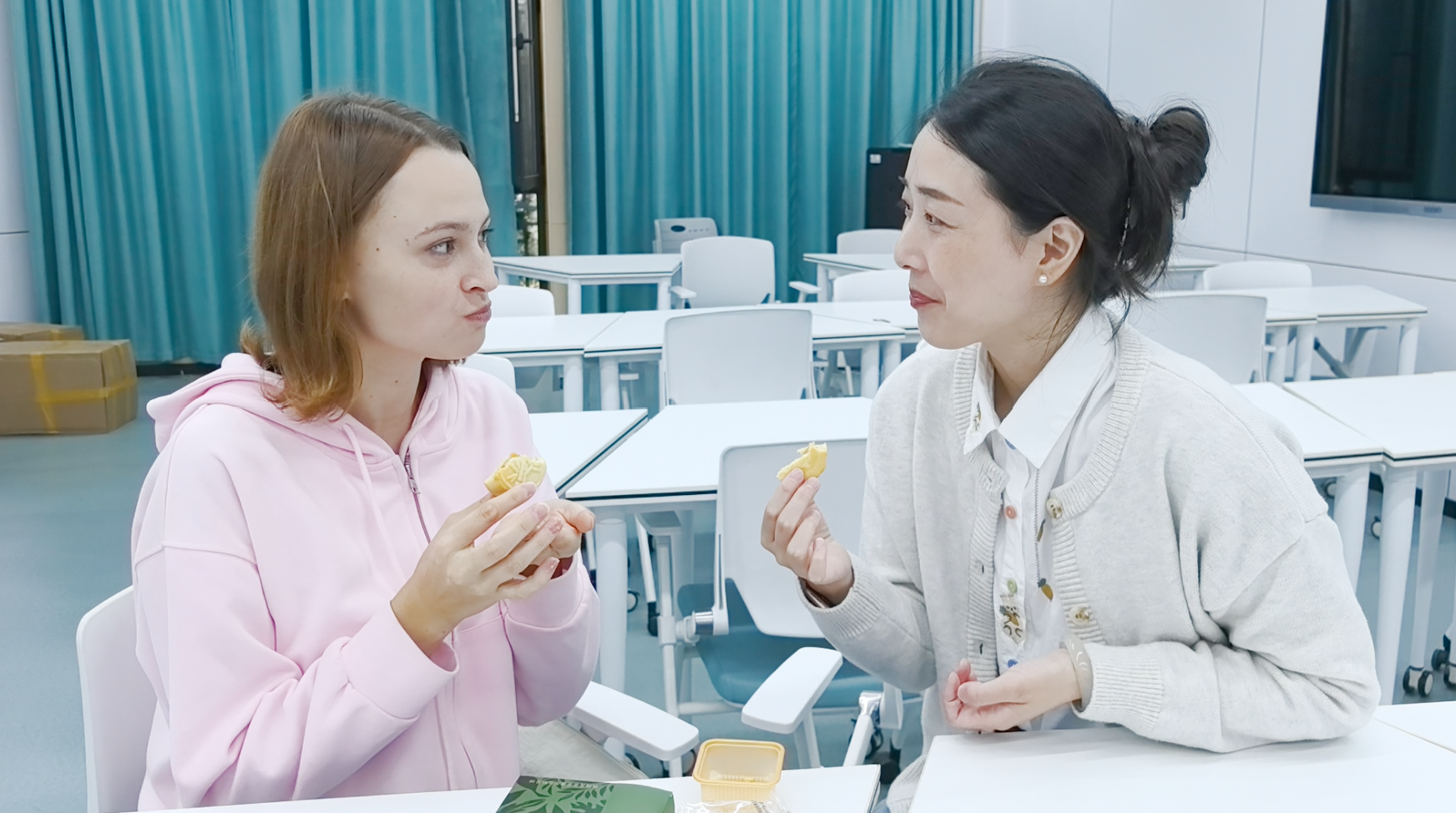 安徽艺术学院播音与主持艺术专业是国家级一流本科专业建设点,同学们的普通话都说得特别好,他们很乐意教我学中文,绕口令“八百标兵奔北坡,炮兵并排北边跑----”一下就把我给绕糊涂了。我真羡慕播音与主持艺术专业的学生,他们的声音真好听,是我学习中文最好的伙伴。
