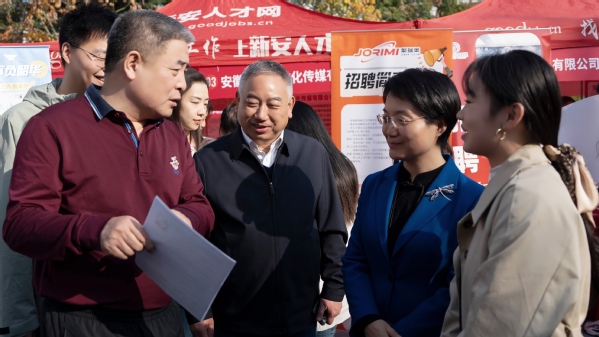 11月5日,在校党委的高度重视与统筹部署下,安徽艺术学院2025年秋季校园双选会圆满落幕。校党委书记韩军,党委副书记、校长柳友荣,党委副书记陈文兵参加现场活动。