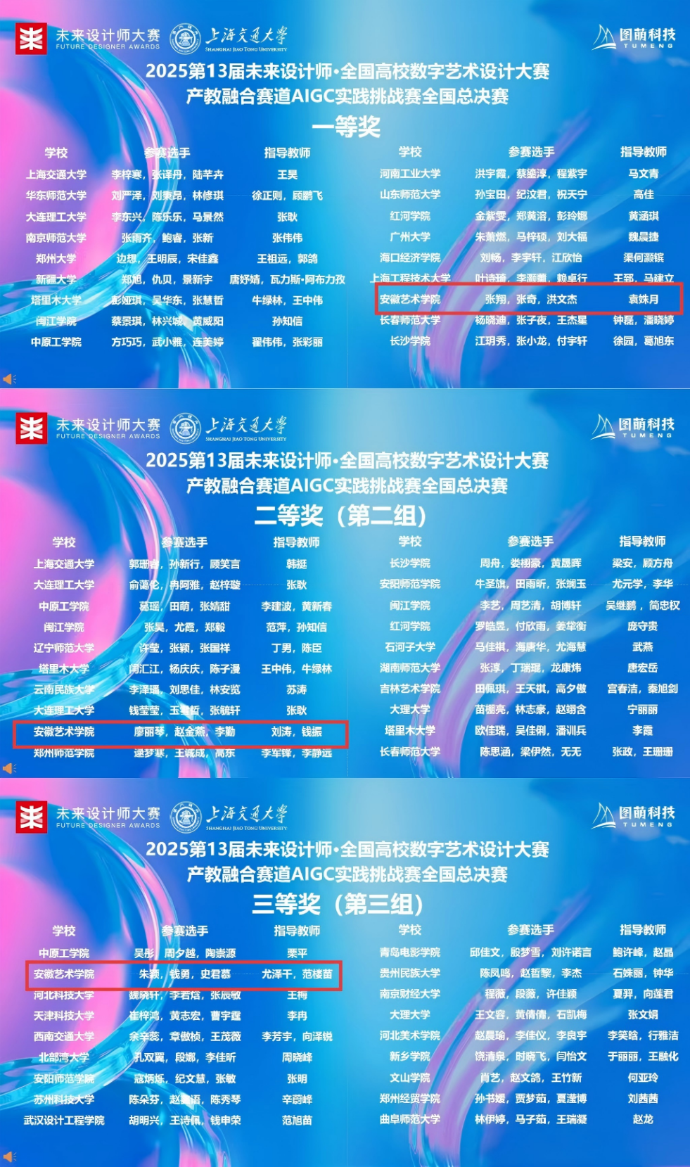 在刚刚落幕的第13届未来设计师·全国高校数字艺术设计大赛AIGC赛道全国总决赛中,安徽艺术学院学子斩获一、二、三等奖各一项,成为赛场上一道亮眼的风景。然而,比奖牌更闪亮的,是这段被爱与信念轻轻托举的温暖旅程。
