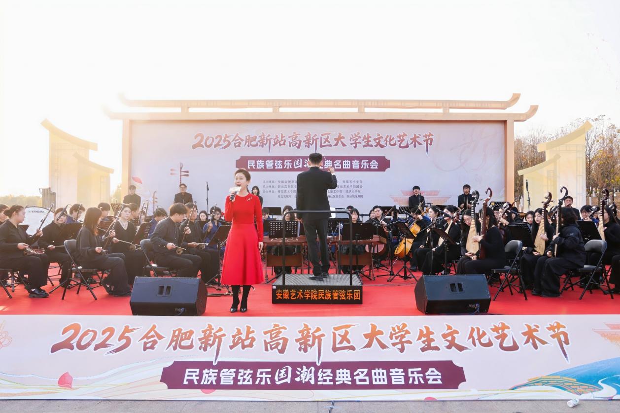11月30日下午,2025合肥新站高新区大学生文化艺术节——民族管弦乐国潮经典名曲音乐会在学林公园举行。本次活动由合肥新站高新技术产业开发区管委会与安徽艺术学院联合主办,是继少荃湖草坪音乐会后,今年新站高新区大学生文化艺术节的又一重要活动。音乐学院副院长张祖顺出席活动。