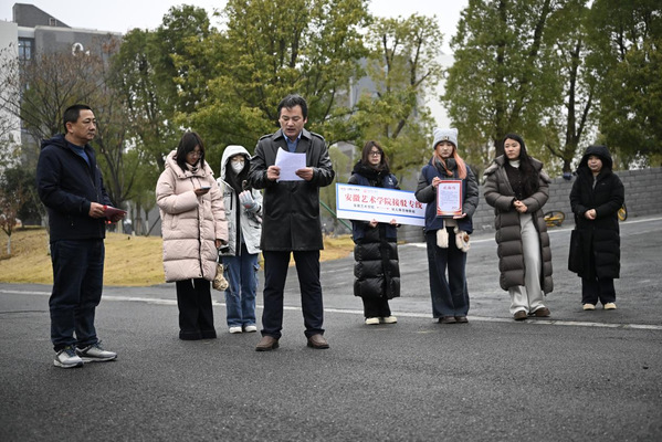 曹晓富代表安徽艺术学院向合肥公交集团递交了感谢信,并授予“安徽艺术学院接驳专线”服务标识牌,感谢公交集团为校园交通作出的积极贡献。