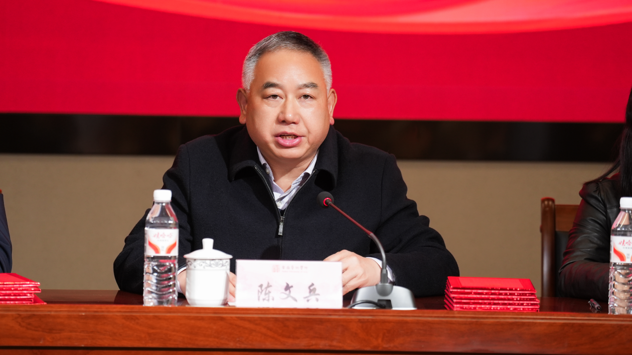 陈文兵做总结讲话,他首先向受表彰的先进集体和个人表示热烈祝贺,向辛勤耕耘在人才培养一线的全体教职员工致以最诚挚的感谢。安徽艺术学院始终坚守“为党育人、为国育才”的初心使命,持续深化教育教学改革,积极搭建多元化育人平台,着力培养知识、能力与品德深度融合的高素质艺术人才。他充分肯定了我校青年学子主动服务安徽文化强省建设的青春担当与积极作为,并对受表彰同学提出殷切期望,希望大家以此为新的起点,在专业上追求卓越,在视野上拥抱时代,在品格上锤炼担当。号召全体同学以先进典型为榜样,树立远大理想,脚踏实地奋斗,在互学互鉴中共同进步,在探索创新中实现突破,努力成长为有理想、有本领、有担当的艺术人才,在服务学校发展和社会进步中书写无愧于时代的青春答卷。