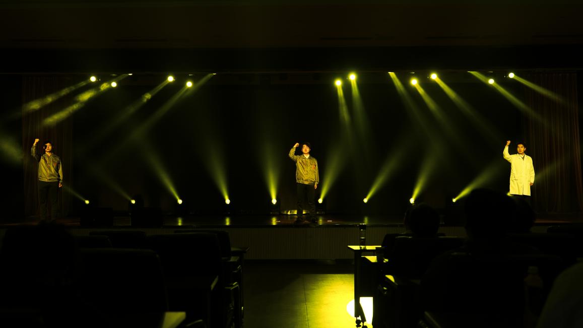 演出在舞蹈《花上春》中拉开帷幕,灵动的舞姿瞬间点燃现场气氛;男声小合唱《总有一天》,歌声清澈嘹亮,传递着青春力量;二胡演奏《新赛马》,旋律激昂高亢,尽显民族乐器的独特韵味;戏剧《Wo men》,以深刻的剧情与细腻的表演,引发观众共鸣;群舞《还是江与淮》舞姿优美动人,展现了江淮大地的人文风情。男声独唱《把一切献给党》情感真挚,朗诵《流淌在小岗村的中国红》气势磅礴,男女合唱《如果爱忘了》温情满满,话剧《逐日》用舞台演绎传递时代精神,最后整场演出在男女合唱《灯火里的中国》中画上圆满句号。