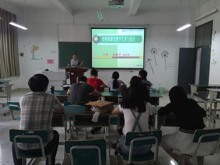 讲座主要从“课堂教学组织设计、课堂的导入、课堂教学的提问设计、课堂教学的语言艺术、教师的动姿艺术、结课艺术、板书技能的最优化要求以及说课环节的内容与设计”八个方面展开。陈静宇老师以自己的获奖作品及其它省级青教赛的获奖作品为例,详细分析了课堂教学的艺术与设计方法。