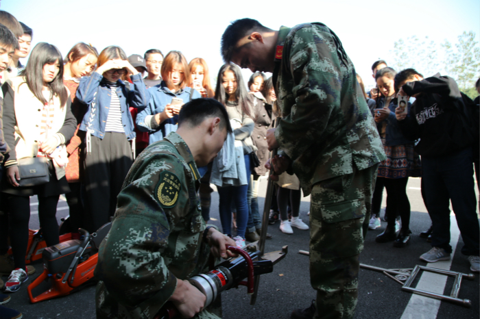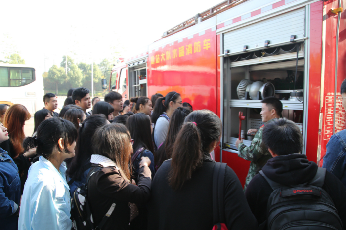 此次参观天水中队的活动共分为三项内容:一是参观各种消防车辆和设备,消防官兵们向同学们演示了各种消防器具的使用方法,有同学还亲身体验了消防服饰的穿戴和救援设备的使用;随后同学们还参观了官兵们的营房宿舍,内务整洁有序,功能齐备给同学们留下了深刻印象。二是学习消防安全知识,在消防中队的大会议室参加了消防安全宣讲,对于如何逃生,同学们在消防官兵的带领下齐声朗诵72字口诀:熟悉环境,出口易找,发现火情,报警要早;保持镇定,有序外逃,简易防护,匍匐弯腰;慎入电梯,改走楼道,缓降逃生,不等不靠;火已及身,切勿惊跑;被困室内,固守为妙,迷离险地,不贪不闹。三是观摩消防官兵爬梯、救援和接水带等技能演示,消防战士还介绍了灭火等设备的使用。