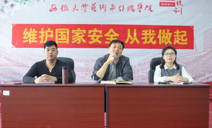 4月27日,新闻播音系在一教二楼阶梯教室,为16级全体学生召开“国家安全日”宣传教育大会。主任助理张井水、学生管理办公室负责人秦帅、系团总支书记陈伟伟出席会议。