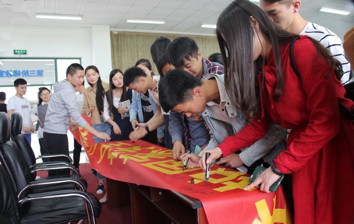 会议最后,进行签字活动。在场老师、同学们纷纷郑重地在印有“维护国家安全,从我做起”的横幅上签下自己的姓名。