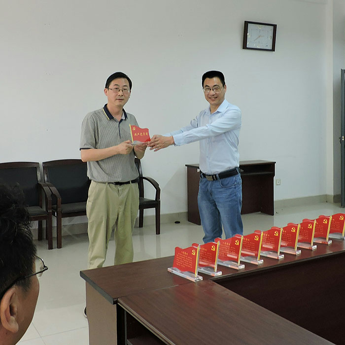 为充分发挥共产党员的先锋模范带头作用,展示良好的党员形象,机关党总支第五支部于6月7日下午开展“共产党员岗”创建活动,机关总支书记钱农,副书记张志云、杨丽同志和各支部书记受邀参加该支部颁发共产党员岗标牌活动。