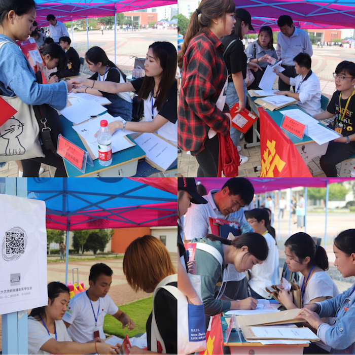 在迎新现场,一群群佩戴醒目团徽的身影,耐心解答新生的疑问、义务提供帮助。我系各级学生干部及志愿者积极投入到迎新工作中,各司其职,各尽其力,积极为迎新工作的顺利开展做贡献。