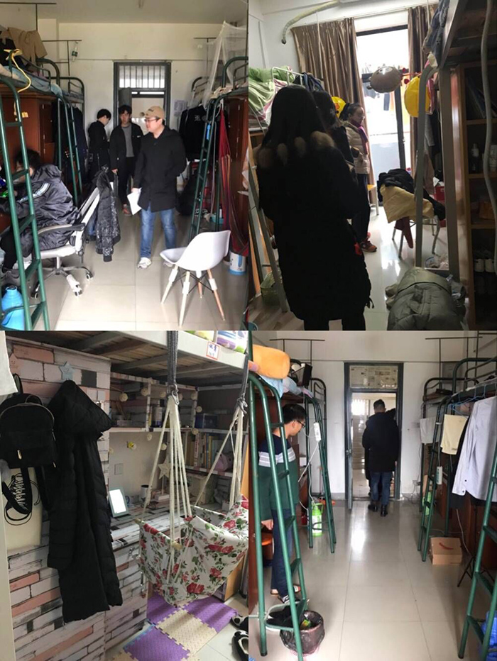 在进行宿舍检查时,老师们亲切询问宿舍生活情况,并叮嘱他们用水、用火及用电等问题安全,要求同学们及时打扫卫生,多通风,勤晒被褥。学生会新老干事认真配合老师此次工作,并详细记录了一些宿舍问题。