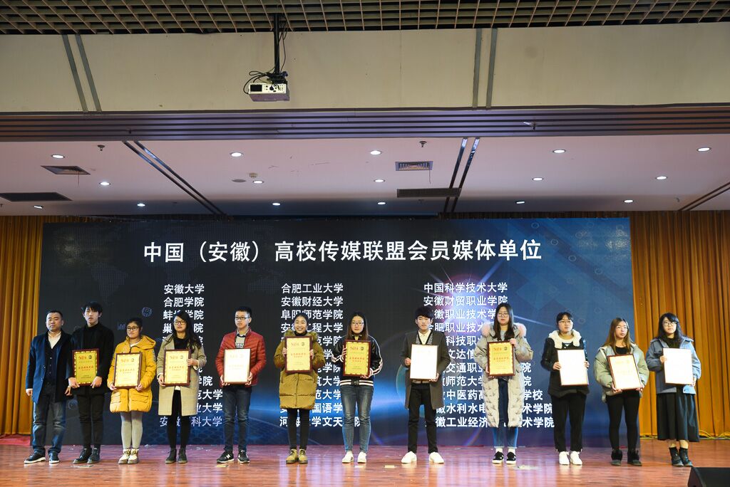 用心灵话筒,采访人生;用智慧笔端,刻画生命。12月30日,安徽省首届校媒精英汇在合肥工业大学图书馆报告厅举行。安徽省团省委副书记李跃波,中国青年报编委、社评部主任、首席评论员曹林,中国青年报安徽记者站站长王磊出席大会。受组委会的邀请,我院新闻播音系树冠工作室主要成员汪博、邓杰彬、郑颖等三位同学,在指导老师周正带领下参加了此次活动。