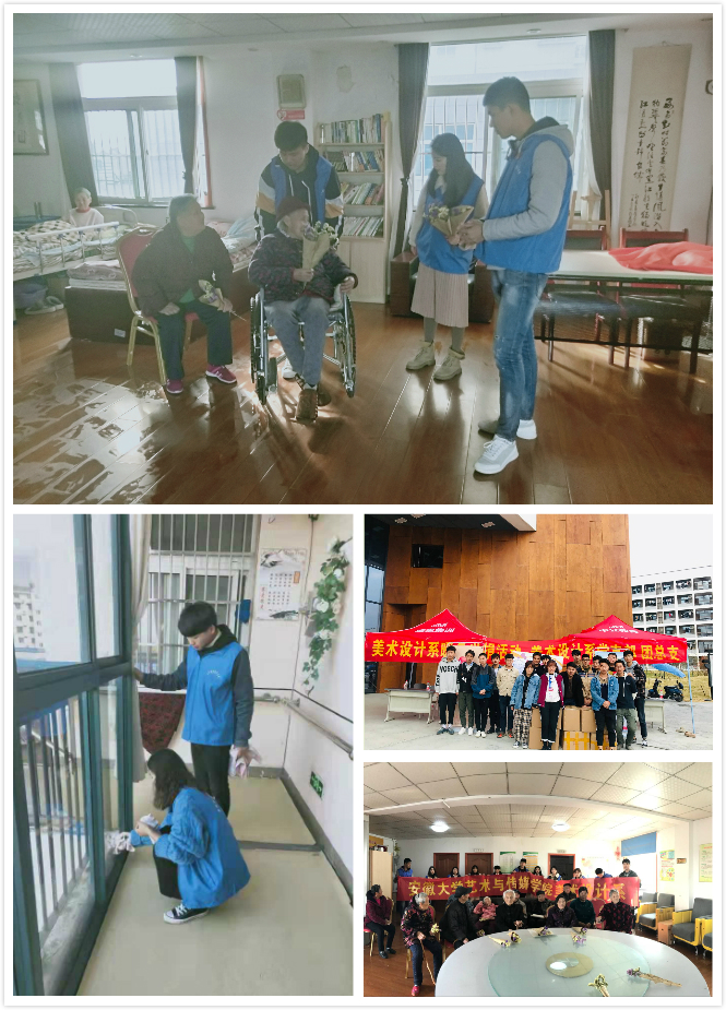 为了弘扬敬老爱幼的中华传统美德,发挥共产党员关心帮扶困难群众的先进性,美术设计系学生党支部联合系团总支、学生会组成志愿者服务团队,于11月10日至13日相继开展“敬老院送温暖”和“暖冬义捐”的系列活动。