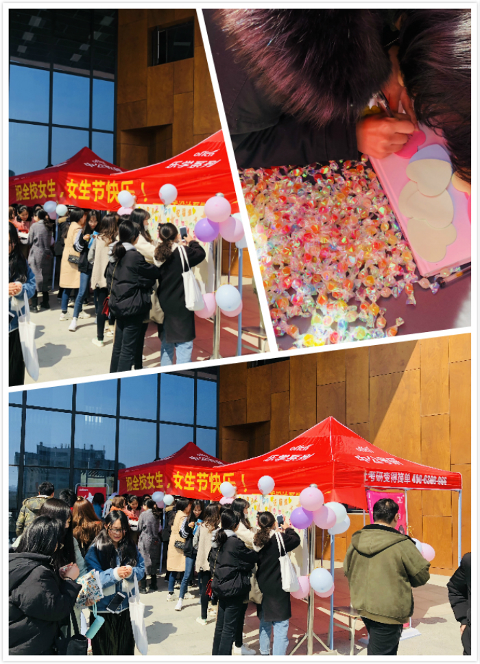 3月7日,“流浪”数月的太阳格外恩赐地播撒着每一寸阳光。美术设计系团总支、学生会在美术楼门前举办了“三七女生节”活动。