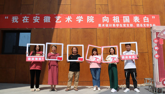 为庆祝中华人民共和国成立70周年、增强同学们的爱国情怀和集体荣誉感,9月30日,美术设计系学生党支部、团总支学生会联合举办“我在安徽艺术学院,向祖国表白”主题活动,在美术楼门前掀起一波爱国热情。