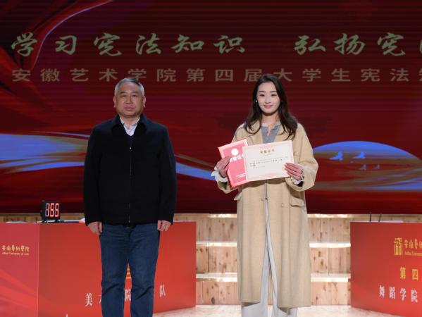 为深入学习宣传贯彻习近平法治思想,推动宪法深入人心,12月3日下午,第十届安徽省学生“学宪法 讲宪法”获奖表彰暨安徽艺术学院第四届大学生宪法知识竞赛活动在音乐学院音乐厅顺利举行。校党委副书记陈文兵出席活动。各二级学院有关负责同志参加。