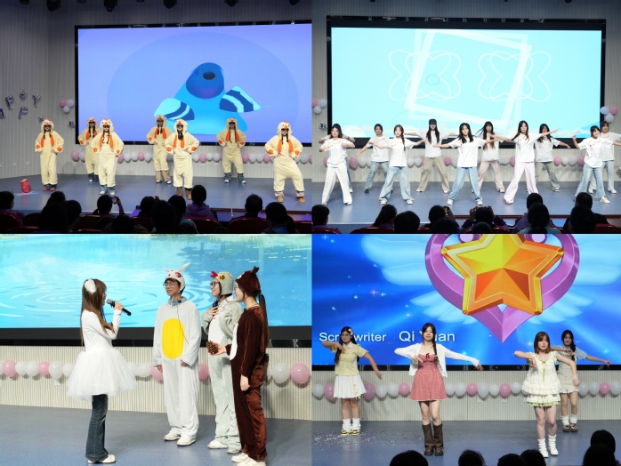 孩子们在艺术趣玩环节中体验泡泡纹理画、天鹅贴纸画等创意游戏,小手探索间满是欢乐,场内处处洋溢着童真笑语;纪念晚会上,儿童剧、歌舞、手偶剧等精彩节目轮番上演,孩子们看得全神贯注,脸上洋溢着灿烂笑容,温暖与美好在现场悄然传递。