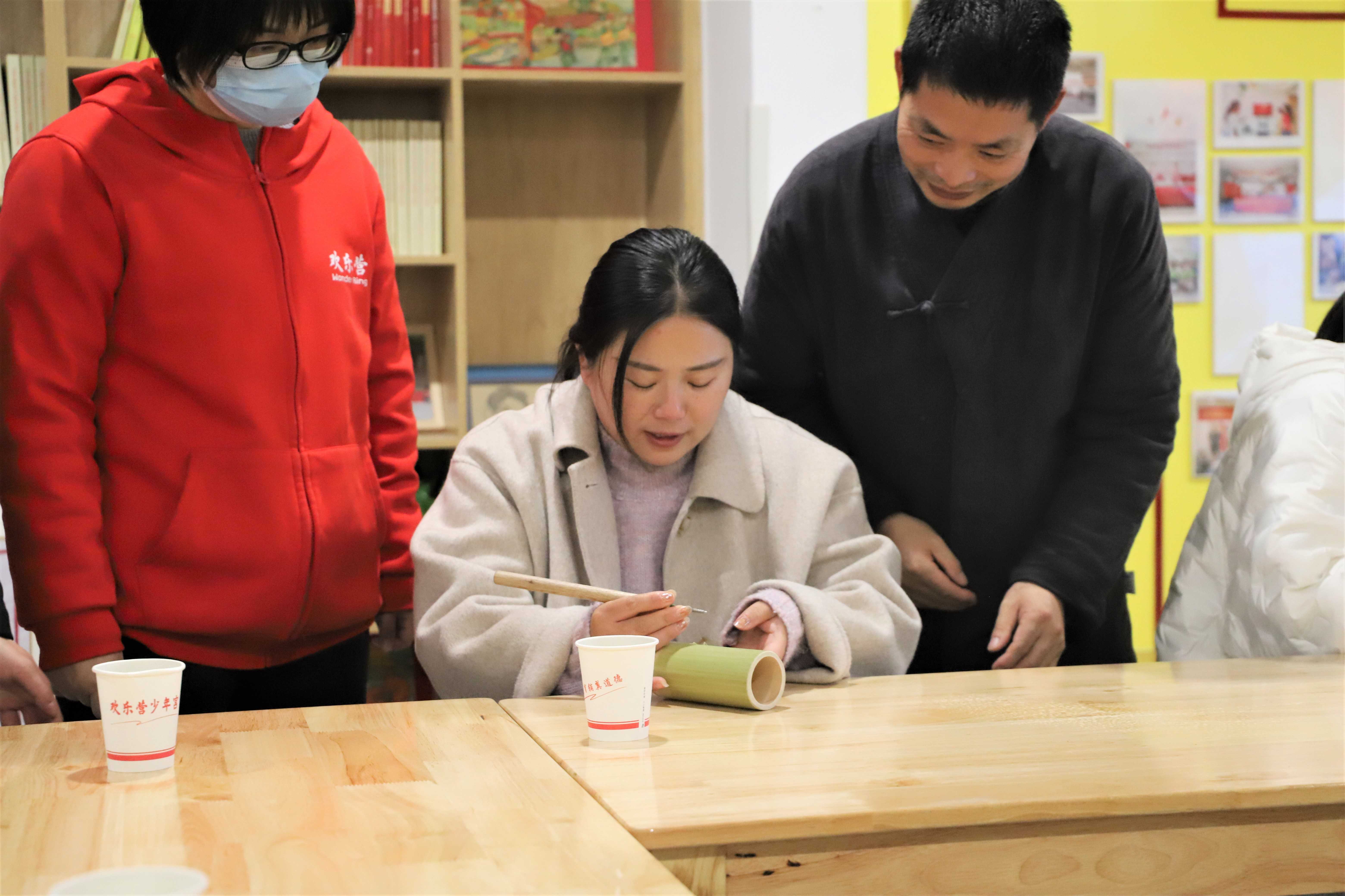课程从竹雕艺术的起源、发展史、材料特性、竹制加工、竹雕技法进行了详细的讲解。社区工作人员和社区居民通过洪老师的讲解,对竹雕艺术有了更深的认识,从而对竹雕产生了浓厚的兴趣,在欣赏和体验中了解竹雕文化,在洪老师指导下对进行竹制笔筒的绘制起稿和雕刻,增进社区居民对非物质文化遗产的了解,使非物质文化遗产能够在社区生根发芽。