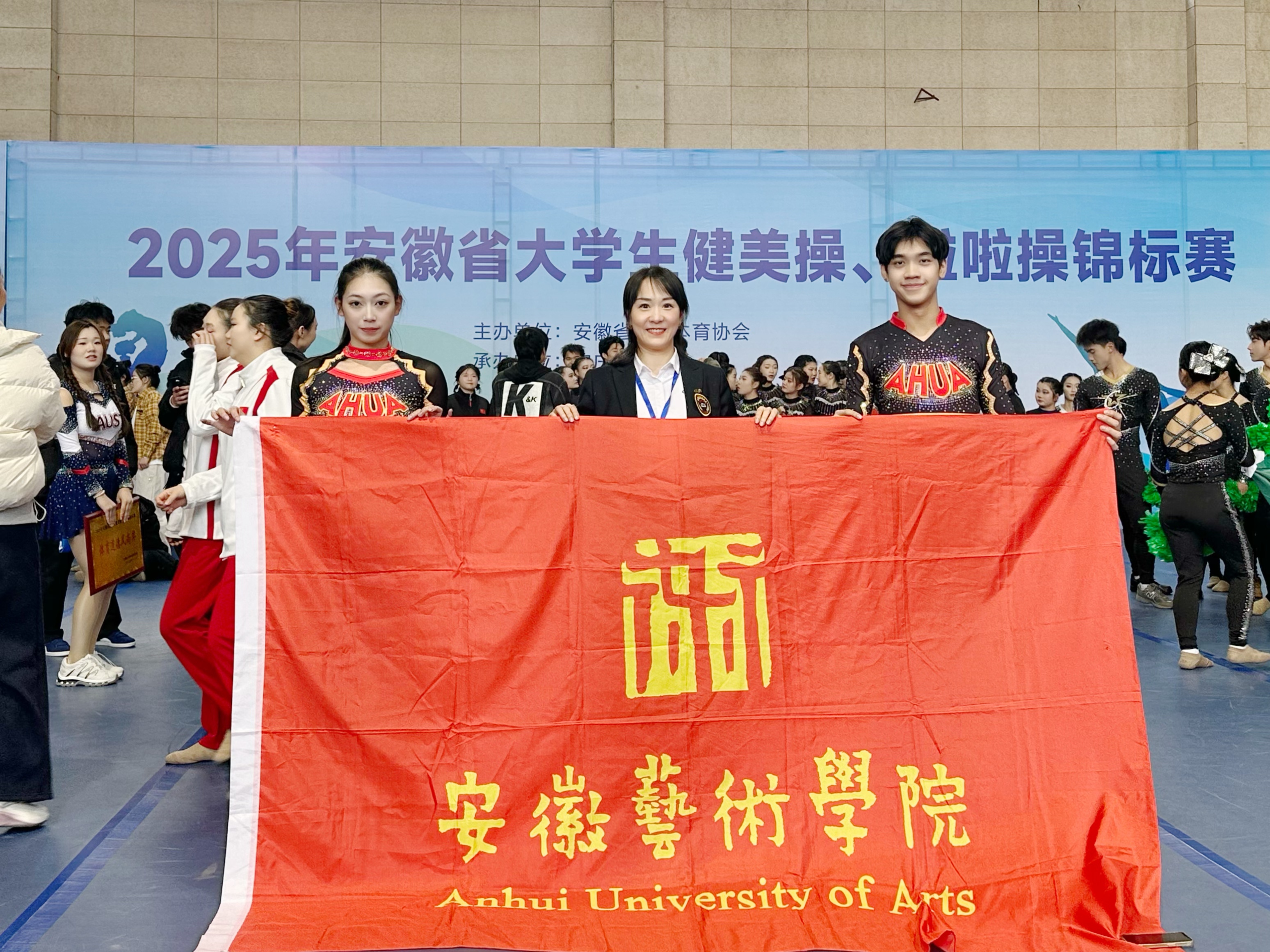12月4日至7日,由安徽省体育协会主办的2025年安徽省大学生健美操啦啦操锦标赛在安徽安庆师范大学盛大举行。我校啦啦操代表队凭借出色发挥,在众多参赛队伍中脱颖而出。在爵士项目的角逐中,队员们以极具感染力的舞蹈动作、精准的节奏把控和富有张力的舞台表现,荣获丙丁专业组双人爵士项目第一。而在街舞项目中,队员们也展现出了高超的街舞技巧和团队协作能力,斩获丁组街舞项目第二名。