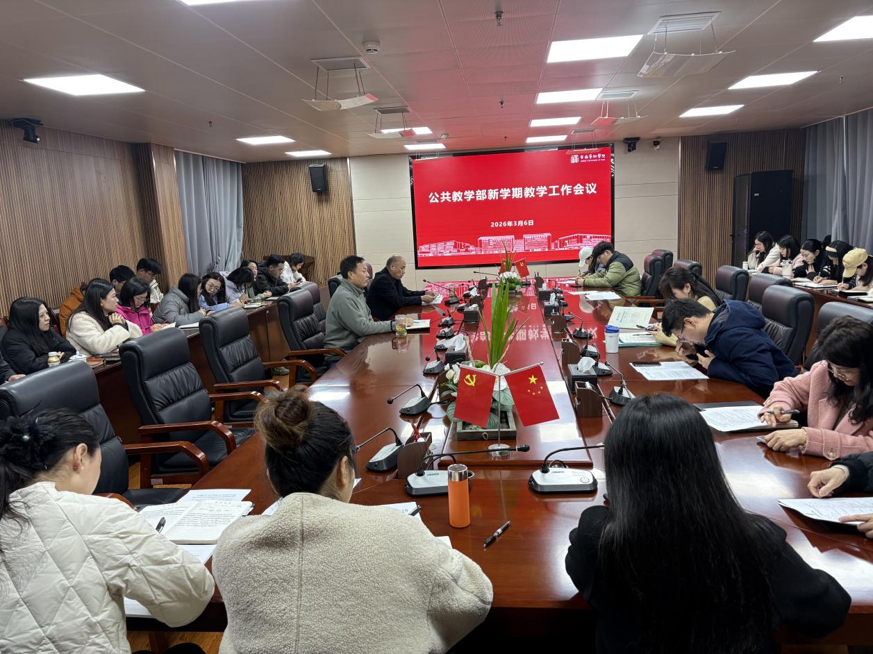 为全面部署新学期教育教学工作,统一思想、明确任务、压实责任,确保开学平稳有序,3月6日上午公共教学部在崇德楼716会议室召开2026年春季学期教学工作会议,会议由公共教学部直属党支部书记张井水主持,全体授课教师参加会议。