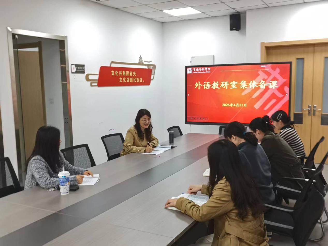为优化课堂教学设计,提升大学英语教学实效,2026 年4月21日上午,外语教研室于崇德楼 721 会议室开展大学外语(英语)集体备课活动,外语教研室全体教师参与本次活动。