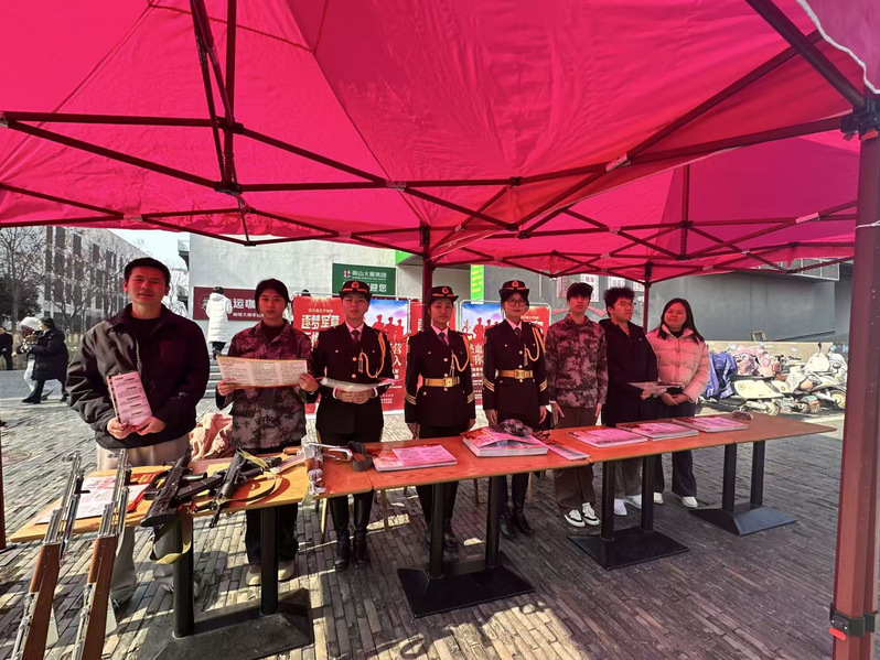 为深入贯彻落实国家和省市征兵工作要求,进一步激发全校学生的爱国热情与强军之志,鼓励广大青年学子积极投身国防事业,近日,我校联合瑶海区人民武装部,开展2026年征兵宣传系列活动。活动邀请瑶海区参谋楚金金、安徽工商学院院党委学生工作部部长兼人民武装部部长王东辉进校开展政策宣讲,同时组织退役大学生士兵、国旗护卫队学生深入一线宣传,多维度、全方位向学生传递参军报国的责任与荣光。