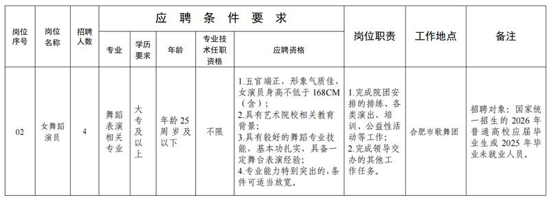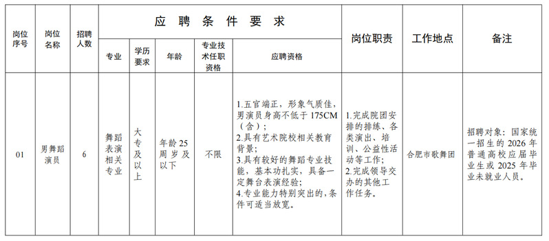 附件1:合肥演艺集团2026年校园招聘表演专业技术人员岗位表.docx