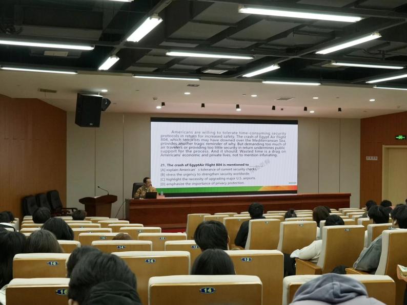 为让咨询会更具针对性与实效性,美术学院提前调研学生备考痛点、精心设计授课内容,并邀请资深考研英语教师宋杰开展专业指导。针对即将参加今年考研的大四学生,围绕英语阅读理解模块,通过拆解题型特点、梳理解题逻辑、演示答题技巧,结合典型例题分析 “定位原文 — 抓取关键信息 — 排除干扰项” 的高效路径,帮助学生突破阅读理解得分瓶颈;针对低年级学生考研筹备的基础需求,专门讲解英语单词背诵方法,从词汇记忆规律、场景化背诵技巧到长效复习策略,全方位帮助低年级学生搭建扎实词汇基础,为后续系统备考奠定根基。