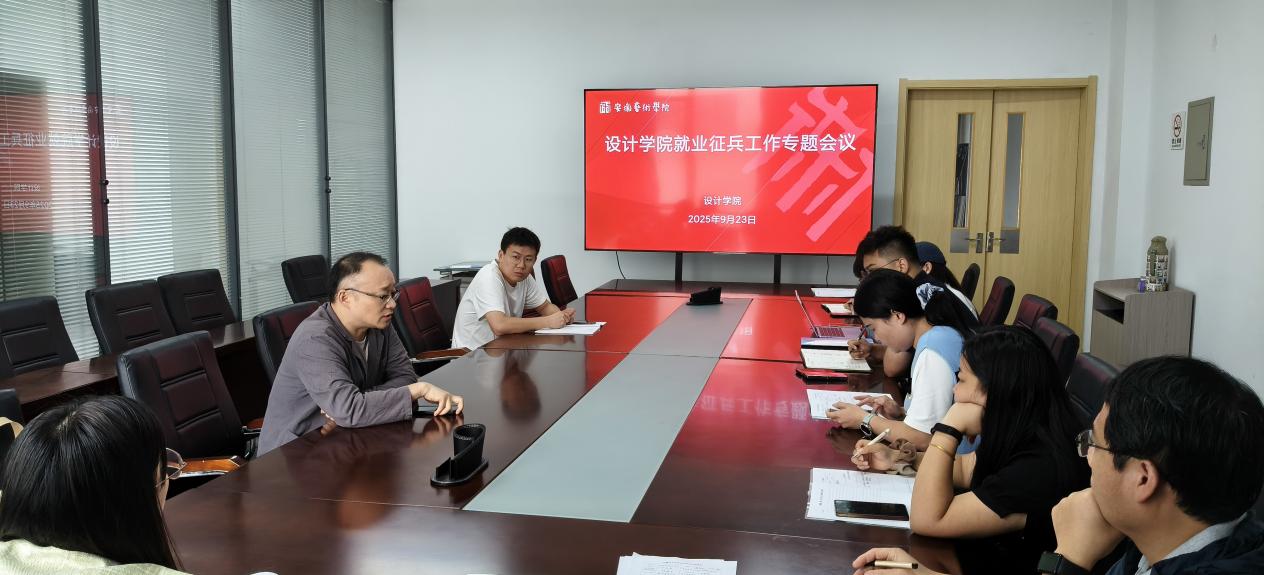 为深入贯彻落实国家关于促进高校毕业生就业和大学生征兵工作的决策部署,9月23日中午,设计学院就业征兵工作专题会议在设计楼401会议室举行。设计学院党总支副书记夏守军、全体专兼职辅导员参加会议。会议由团总支副书记王亚鹏主持。会上,王亚鹏通报了我院2025届毕业生就业及征兵工作完成情况和2026届毕业生就业及征兵工作准备情况。毕业班辅导员将各自就业工作开展情况及下一步推进措施进行详细汇报。夏守军作指导发言并提出三点要求,一是压实责任传导,辅导员、班主任、毕设指导教师协同,形成全员促就业合力。二、深化校企合作,加强访企拓岗促就业行动,深挖校企合作与行业渠道等潜力。三、抓实抓细征兵工作,加大宣传、精准施策,用心做好全流程帮扶。确保实现2025届毕业生高质量充分就业目标,同时为2026届就业征兵工作开好局、起好步。本次专题会议为设计学院就业与征兵工作统一了思想、明确了方向、凝聚了力量。全院上下将进一步增强责任感和紧迫感,以更加坚定的决心、更加有力的措施,为毕业生顺利就业、投身国防保驾护航,助力每一位学子踏上人生新征程。撰稿:黄威 摄影:桑程晨 编辑:薛莲 复审:王从启 审定:俞璋凌