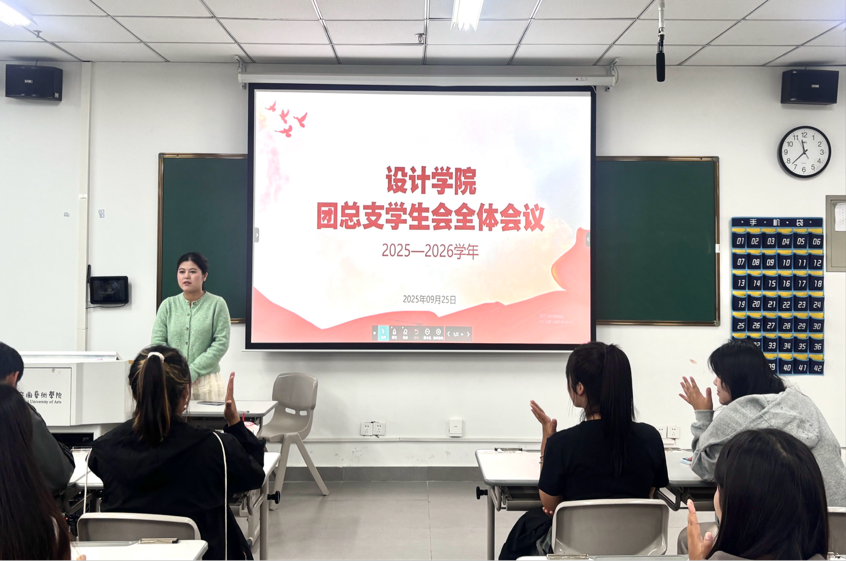 为明确新学期学生工作方向,推动学院学风建设再上新台阶,9月25日,设计学院团总支学生会在设计楼304教室召开学生干部大会。会议由设计学院团总支副书记薛莲老师主持,全体学院团总支学生会成员参会。