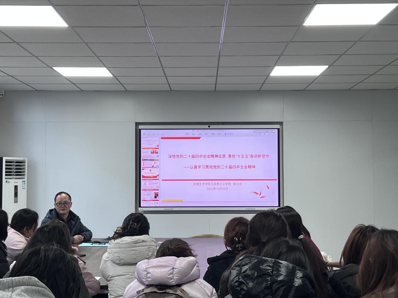 2025年12月26日,党的二十届四中全会精神宣讲会在一站式学生社区会议室召开。本次宣讲特别邀请安徽艺术学院马克思主义学院高元龙老师主讲,2025级视觉传达设计专业学生到场聆听学习,感悟全会精神,凝聚青年奋进力量。