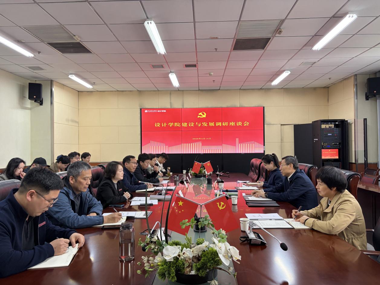 校办公室主任、机关党总支书记吕中华等陪同调研,设计学院党政班子成员、各部门负责人、青年教师代表等参加座谈。