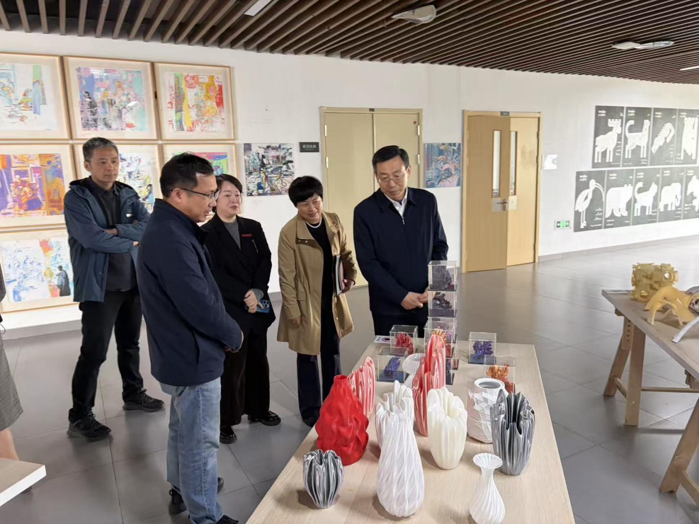 调研中,范奇实地察看了设计学院学生作业展、工作室、实验实训室及数字创意设计产业学院,详细了解设计学院办学条件、教学实践、产业融合等相关情况。