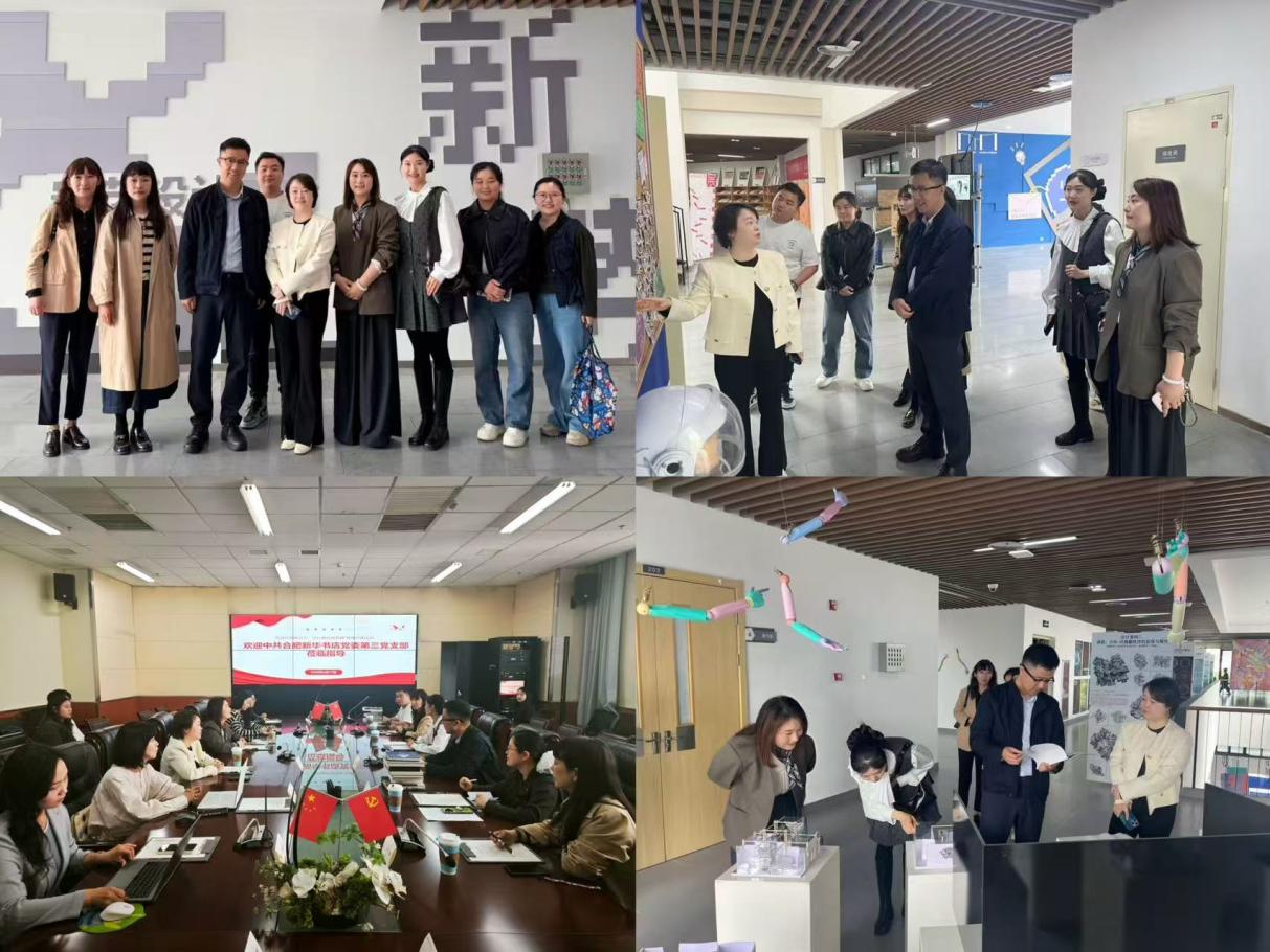 新华书店一行首先实地参观校园环境,调研设计学院专业成果展厅、教学实训场地,详细了解学院党建工作、专业建设、人才培养及艺术创作成果,沉浸式感受校园艺术氛围与育人特色。随后,双方在会议室开展座谈交流。设计学院展示了近年来专业建设成果,并围绕文化创意服务落地合作的方向进行探讨。新华书店党委第三党支部介绍了新华书店的发展历程、红色文化底蕴以及党建引领宣传思想阵地建设的经验做法。双方一致认为,新华书店作为党在宣传思想战线的主阵地和重要力量,红色基因深厚,党建工作基础扎实;我校艺术设计教育与文化传播服务天然契合、优势互补,以党建共建为纽带,能够实现资源共享、优势互补、协同育人、双向赋能。