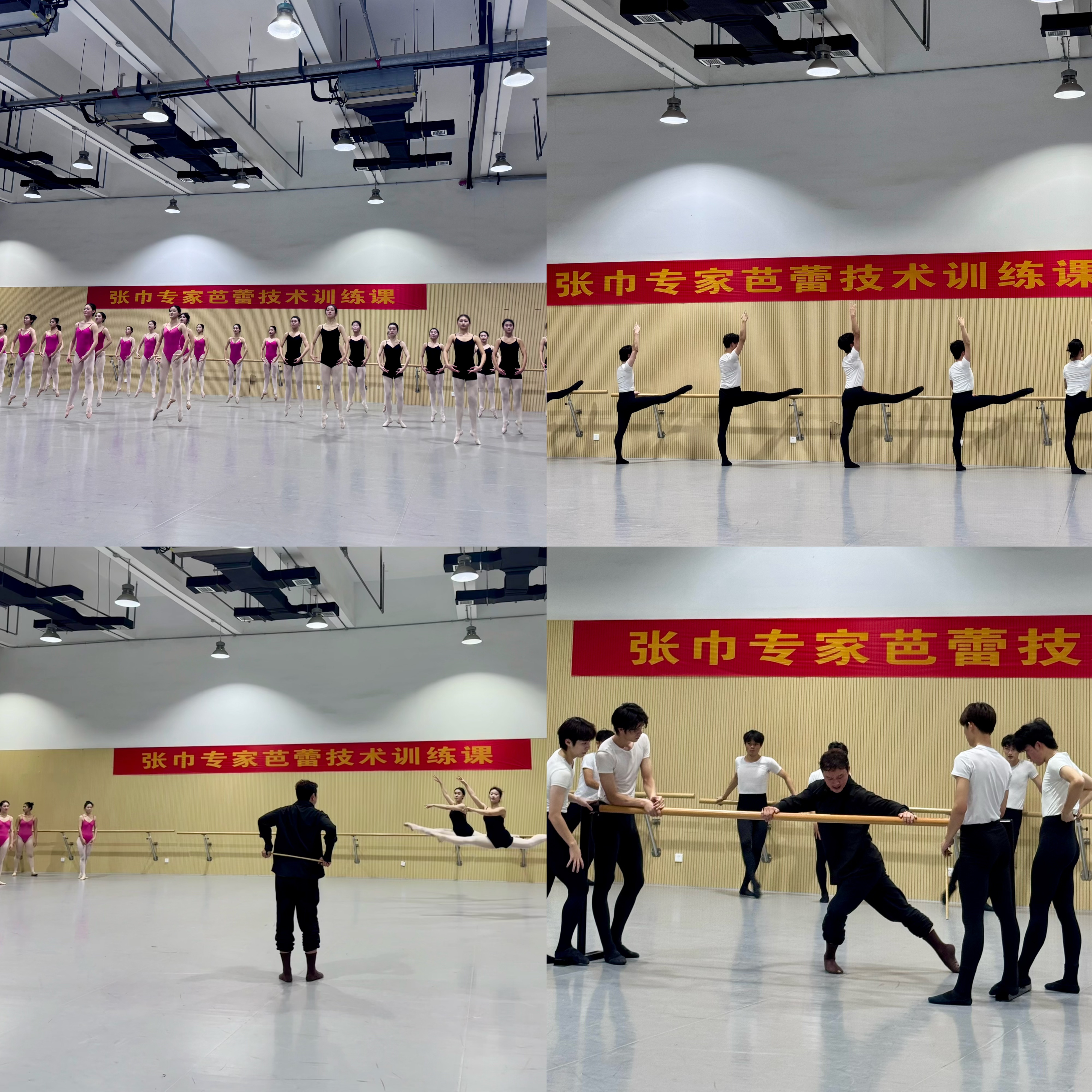 本次课程围绕芭蕾基础技术、身体协调性、肌肉控制与艺术表现力等多个维度展开。张巾结合自身丰富的舞台表演与教学经验,通过细致讲解、动作示范、个别指导与组合训练等方式,系统教授了芭蕾训练中的核心要领与技巧细节。在连续五天的教学中,同学们不仅巩固了芭蕾基本功,还在动作规范性、舞蹈质感及艺术理解上取得了显著进步。
