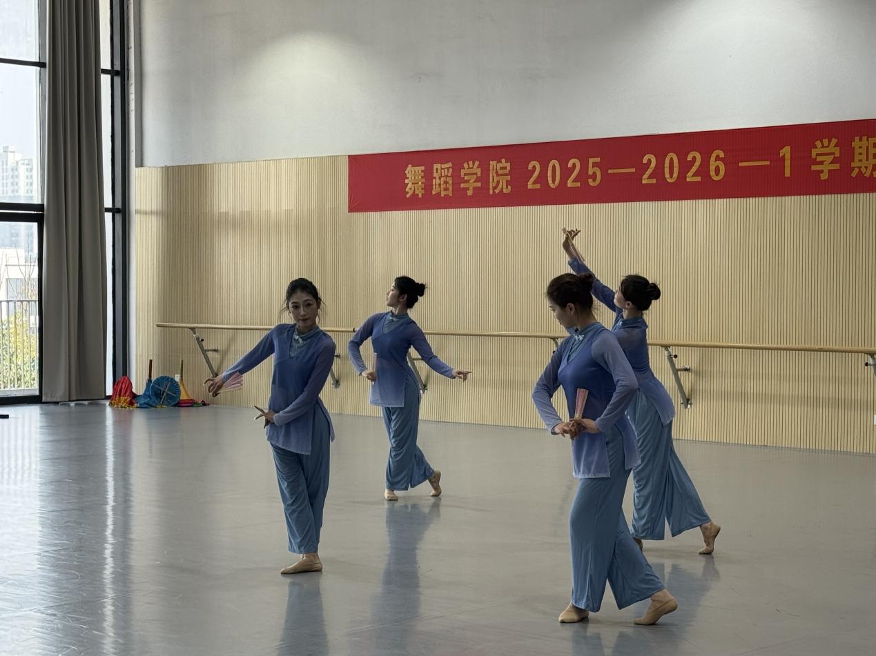 活动设三个环节:教师示范课上,《地方戏曲舞蹈训练——旦角形象塑造》《中国民族民间舞(花鼓灯男班课程)》将安徽地方文化与舞蹈艺术的深度融合,既凸显专业训练的系统性、技术传承的规范性,又展现表演风格的独特性,呈现出训练性与表演性、技术性与风格性兼容的特色教学成效;学生个人项目中,芭蕾舞(青年女子组)、现代舞(青年男子组)、国际标准舞(青年双人舞组)及中国民族民间舞(青年女子组)四个组别依次登台,各组别在技术技巧、风格韵味与舞台呈现上亮点鲜明,教师针对动作细节打磨、情感内核传递、舞台调度设计等方面现场指导,进一步提升节目完成度与艺术表现力。