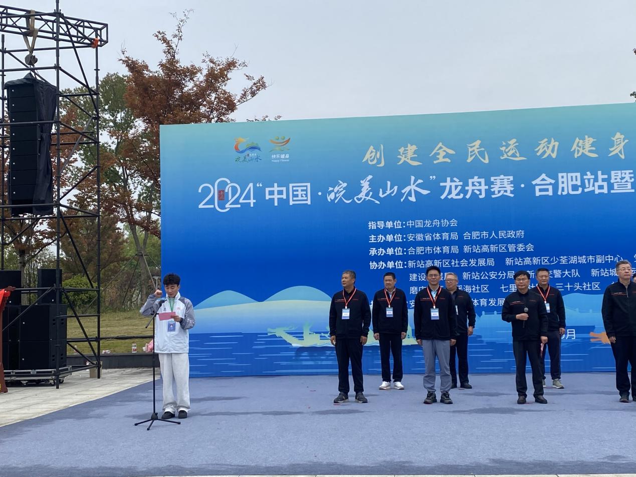 本次比赛由安徽省体育局以及合肥市人民政府主办,校党委委员、人事处处长、戏剧学院党总支书记曹晓富,公共教学部直属党支部书记张井水出席开幕式,我校龙舟队队员胡澎宇代表运动员宣誓。