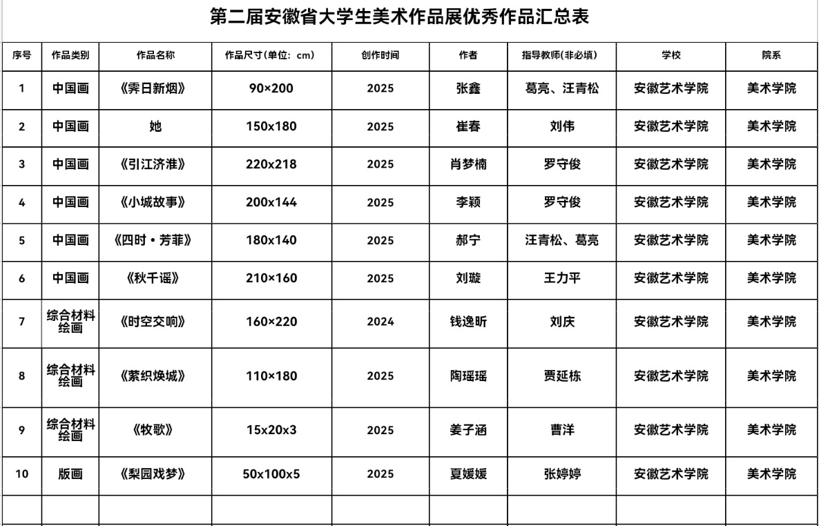 近日,由安徽省美术家协会主办的第二届安徽省大学生美术作品展复评结果正式公布。