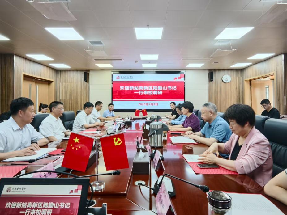7月3日,新站高新区党工委书记、管委会主任陆勤山一行来我校调研交流,校党委书记韩军、党委副书记陈文兵等陪同调研。