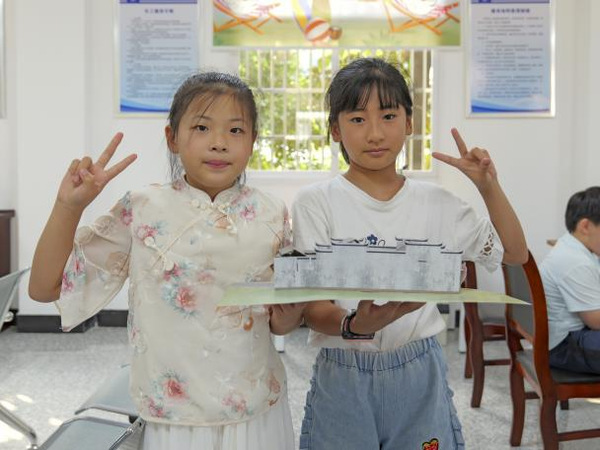 红色基因的传承在少年群体中焕发活力。副主席张丽丽带领孩子们学唱《映山红》《八月桂花遍地开》等红色经典,通过歌曲背后的革命故事讲解,让爱国情怀在悠扬旋律中自然浸润。在徽州建筑文化课堂上,陈娟借助图片展示、故事讲解、模型演示等方式,向小朋友介绍徽州建筑文化知识。随后开展的徽派建筑模型制作与绘画活动,让孩子们在动手实践中加深了对地域文化的理解与热爱。