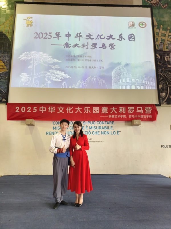 我校高度重视此次文化交流活动,选派戏剧学院教师李丽娟和舞蹈学院教师张钰浩赴罗马营授课,承担黄梅戏与花鼓灯等安徽地方艺术的教学传播任务。
